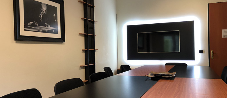 It is a 14-person capacity small room used for meetings and seminars. The room is in the high school building and used for daily meetings as well.